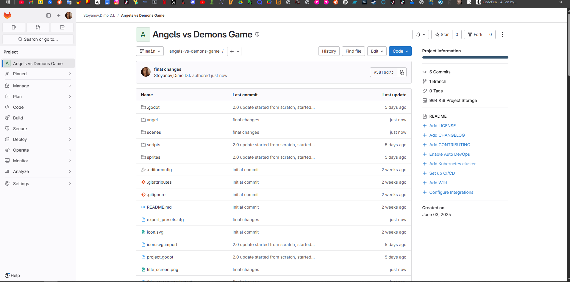 Using version control made my workflow much safer and more organized. I could experiment without fear of breaking the main game, and it was easy to revert or review changes. I got used to writing good commit messages and realized how much clearer my own process became when I looked back through the project history. This experience also helped me practice working in a way that’s expected in the industry.