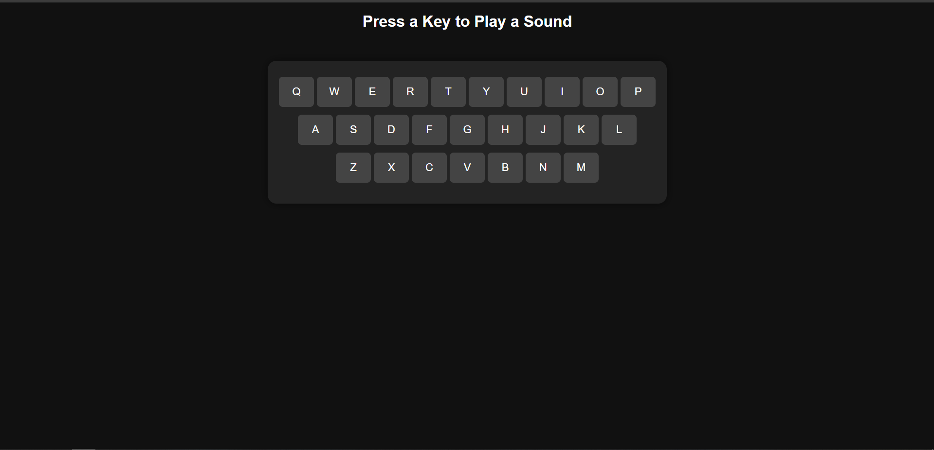 Building the sound keyboard showed me how to connect user input (both mouse and keyboard) to audio and UI feedback in real time. I had to test for edge cases, like multiple keys and missing sound files, which improved my debugging skills. The assignment helped me practice DOM manipulation and event handling, and I realized how even simple features can feel more interactive and fun with the right feedback and design choices.