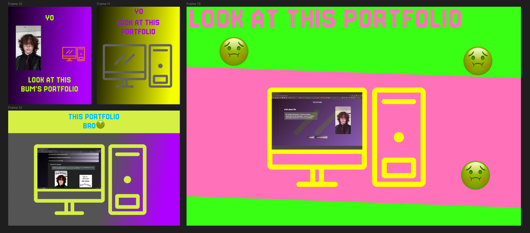 Four ugly color frame iterations for portfolio advertising
